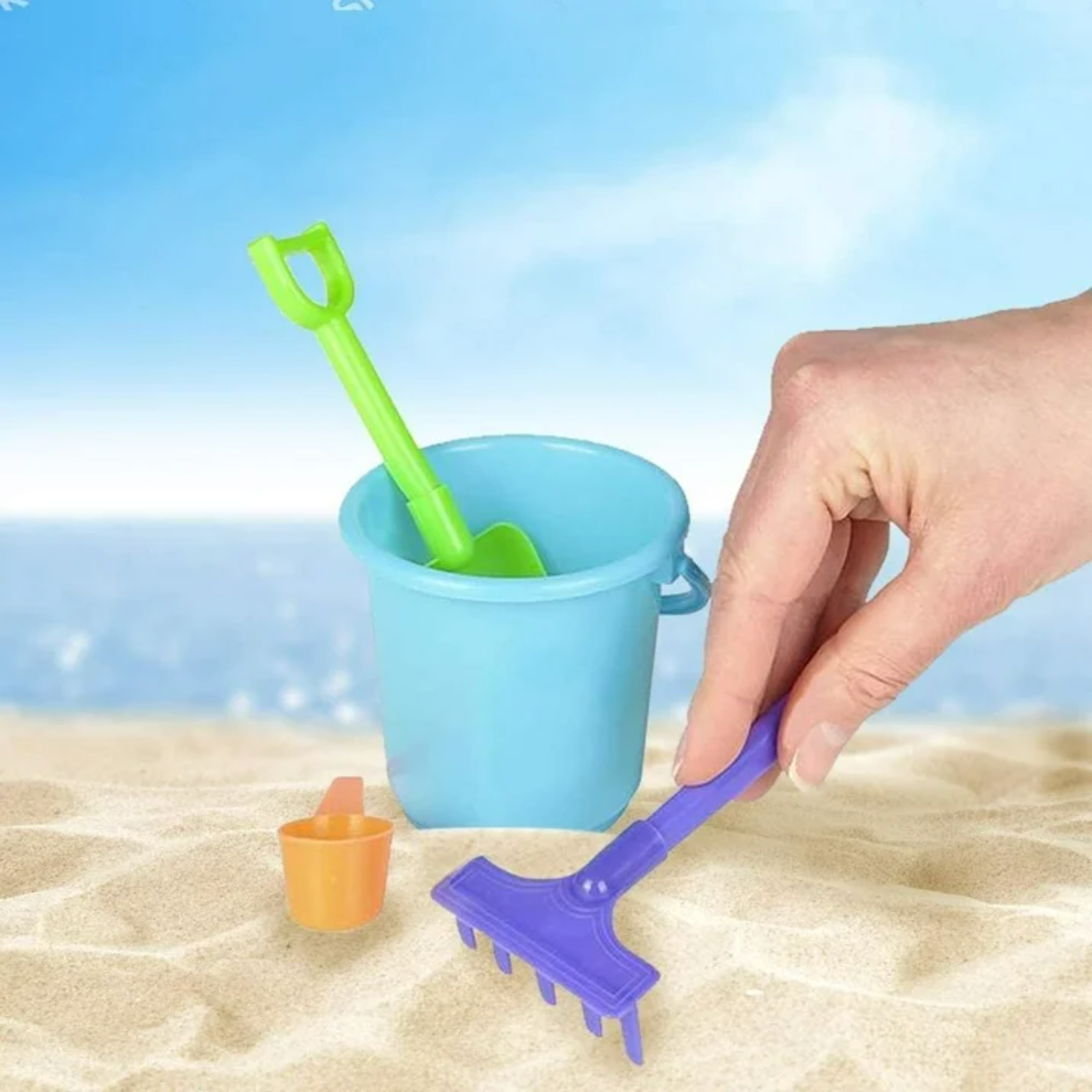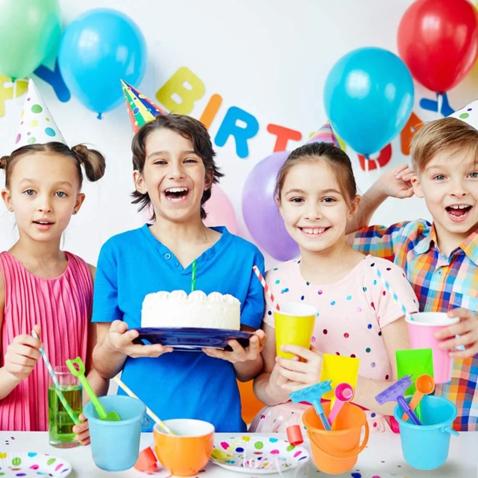 Kids get a sturdy 4-piece sand tool set perfect for shaping, digging, and role-play outdoors. Buckets include a handle for easy carrying, and each tool is sized for comfort and control. Great for travel, beach trips, school activities, and goodie bags.