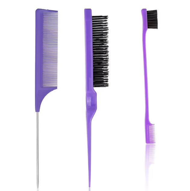 Includes an edge brush, teasing comb, and rat tail comb. Ideal for edge control, parting, and volumizing. Works for all hair textures and lengths. Lightweight, durable, and easy to clean.