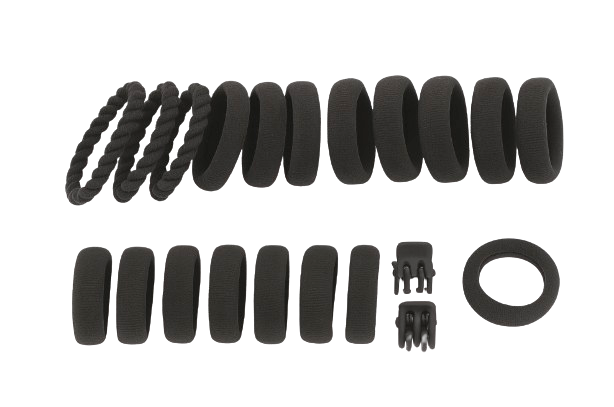 Includes 25 total pieces of assorted pastel hair ties and clips