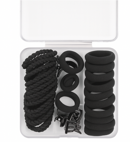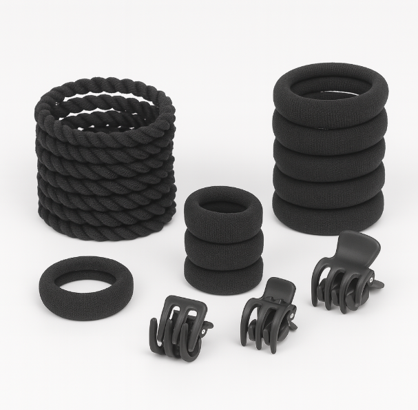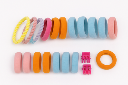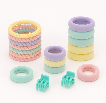 - Includes: Elastic hair ties, twisted bands, and hair clips