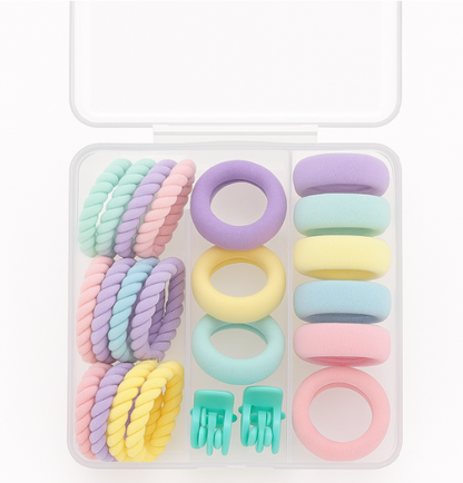 🎀 Keep your little one’s hair stylish and neat with this adorable gift box set of assorted hair accessories. Each clear case contains a vibrant mix of soft elastic hair ties, cute mini claw clips, and fun twisted braided bands—perfect for everyday use, school, dress-up, or gifting. With multiple color themes, including pastel, rainbow, and classic black, these sets are both functional and fashionable. Ideal for toddlers, girls, or even tweens looking to express their style.
