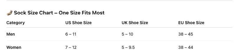 One size fits most: Men's US shoe size 6-11, UK 5-10, EU 38-45; Women's US shoe size 7-12, UK 5-9.5, EU 38-44.