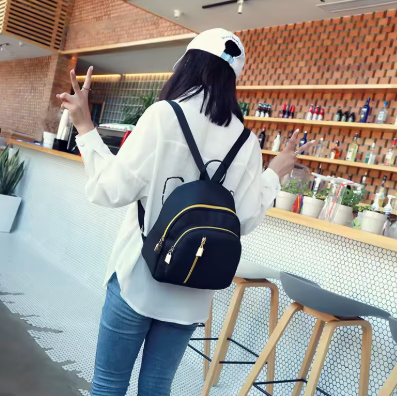 This lightweight nylon mini backpack is perfect for everyday use or short trips. Its sleek design and compact size make it ideal for casual outings, travel, or evenings. The backpack features a convenient front zipper pocket and a top handle for easy carrying. Made from durable nylon, this stylish backpack offers both functionality and portability, allowing you to carry your essentials with confidence and style. The gold accents add a touch of elegance to its practical design.