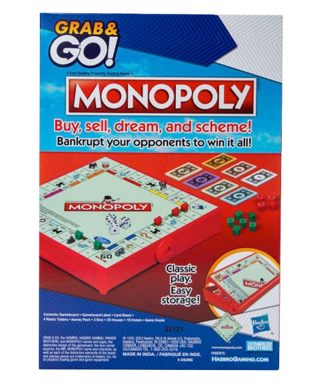 Take the world’s favorite real estate game anywhere with the Hasbro Monopoly Grab & Go Travel Edition! This portable version delivers all the excitement of classic Monopoly in a compact, travel-friendly design. Buy, sell, and trade properties just like the original game, but now in a convenient case that keeps everything organized on the move. Perfect for road trips, vacations, and quick family game nights wherever you are.