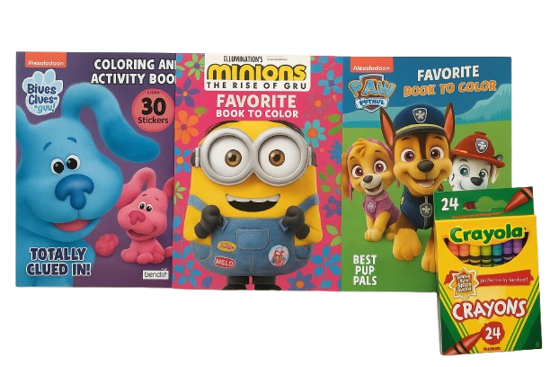 This fun activity bundle keeps kids engaged with three entertaining coloring books featuring popular characters and easy tear-out pages for creative use. Perfect for quiet time, travel, and screen-free play, paired with a 24-count crayon set for vibrant coloring. Ideal for ages 3 and up.