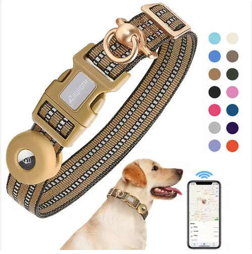 Nylon Soft Adjustable Dog Training Collar with AirTag Holder