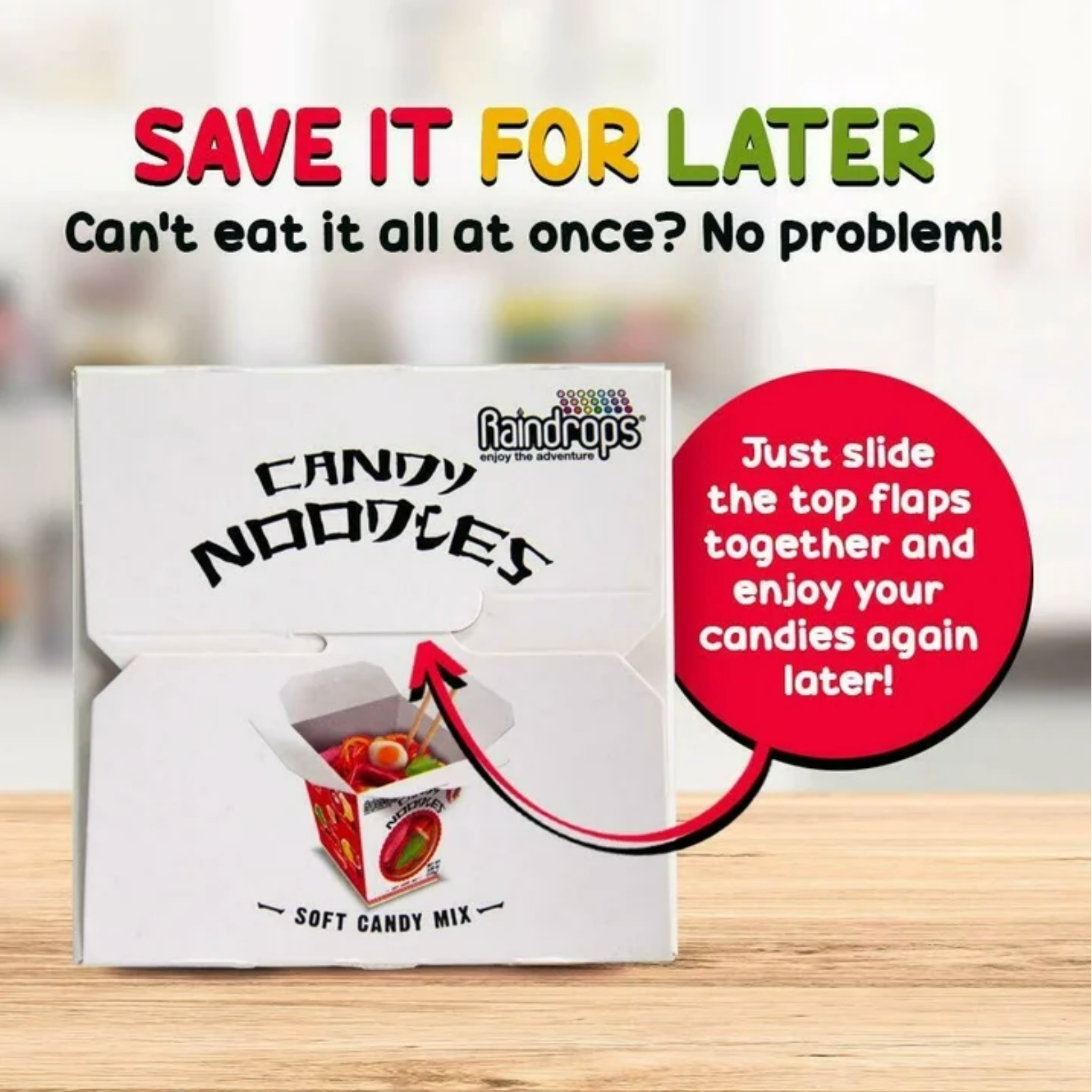 Raindrops Mini Gummi Noodles Soft Candy Mix delivers a playful and flavorful treat in a fun takeout-style box. This novelty gummy candy includes assorted soft gummies shaped like noodles and toppings for a creative snacking experience. Perfect for party favors, gift baskets, impulse candy displays, or unique treat lovers. Each pack includes two 1.2oz boxes.