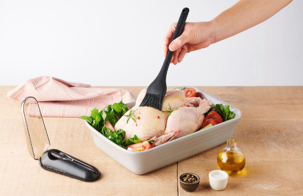 This silicone BBQ grill oil brush is designed for easy use.