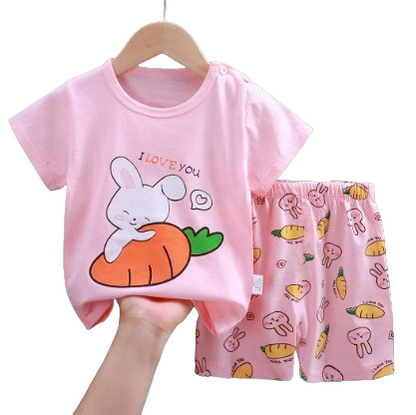 Keep your little one comfy and cheerful in this adorable Girls' 2-Piece Rainbow T-Shirt and Shorts Set. Made from soft, breathable cotton, this lightweight outfit is perfect for warm weather playtime or casual outings. The colorful striped T-shirt features a playful rainbow and cloud design with the words "Happy Good Baby," paired with matching elastic-waist shorts for easy changing and all-day comfort.