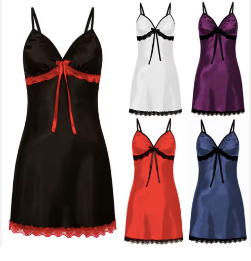 Women's Satin Lace Nightgown – Short Sleepwear Chemise